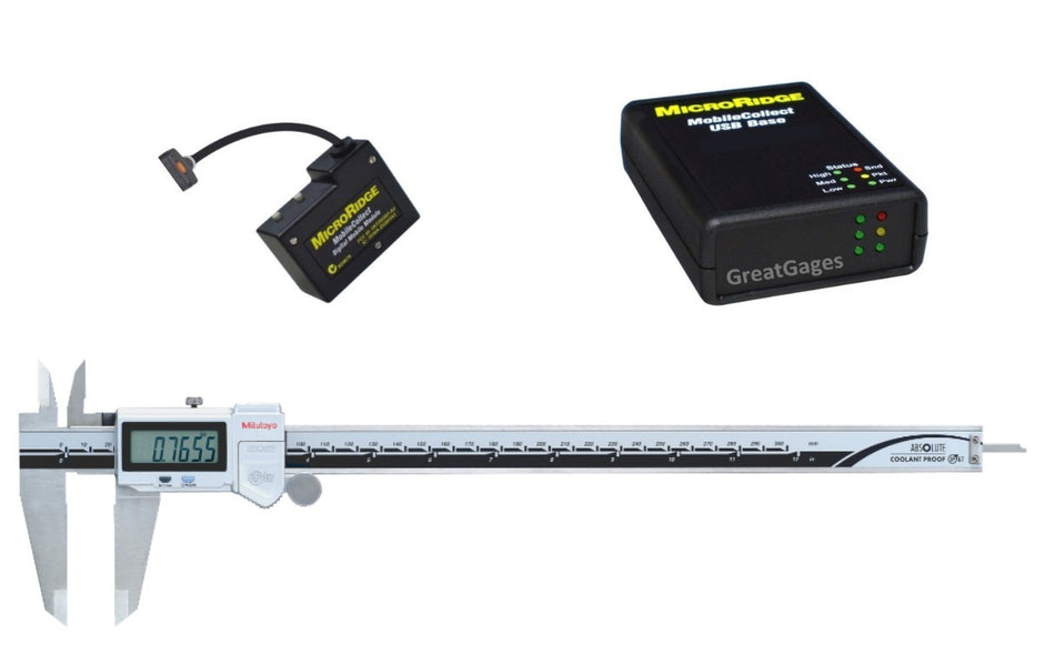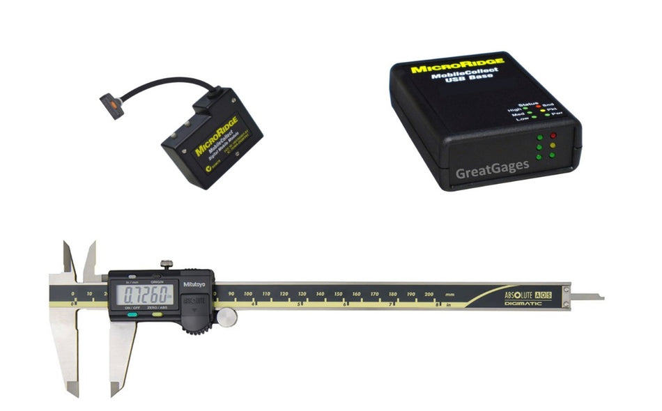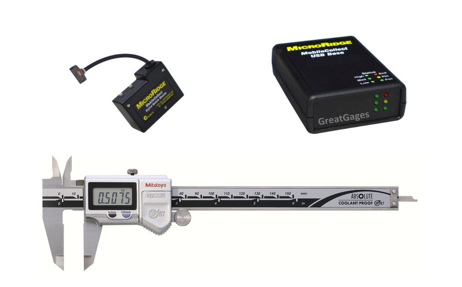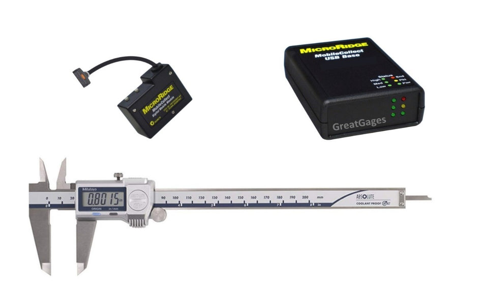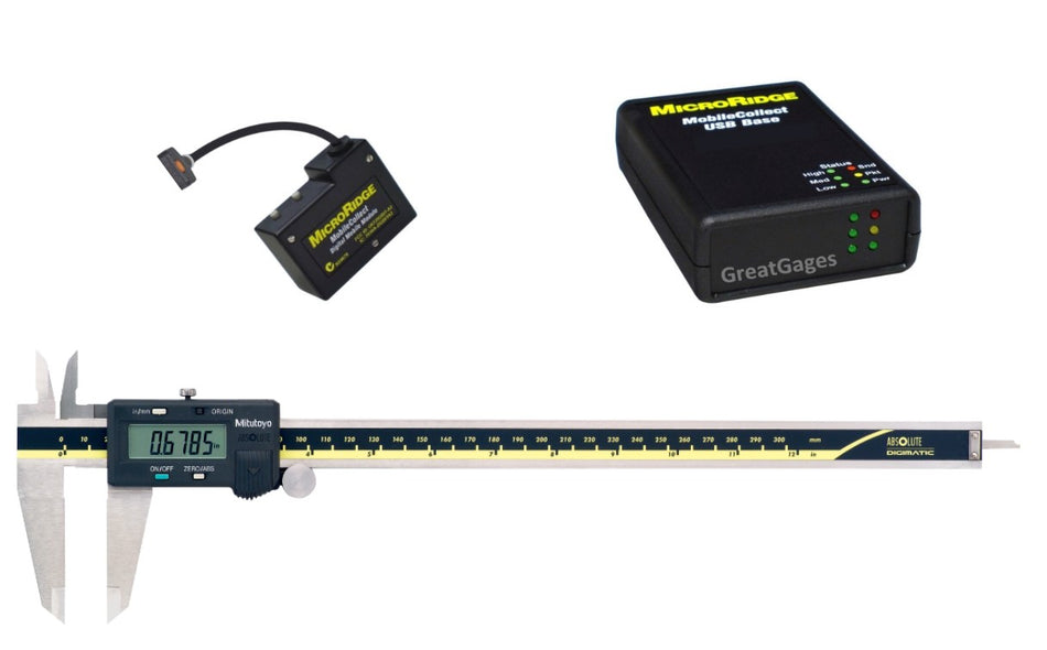 The Digital Caliper to PC Wireless Packages that we offer include a variety of different Digital Calipers combined up with either the Mitutoyo U-Wave Wireless System or the MicroRidge MobileCollect Wireless System. Each of these packages gives you the ability to record and store measurement data directly in a computer, eliminating the need for paper records. Additionally, the wireless transmission of data enables real-time monitoring of measurements, enabling faster decision-making and problem-solving.
