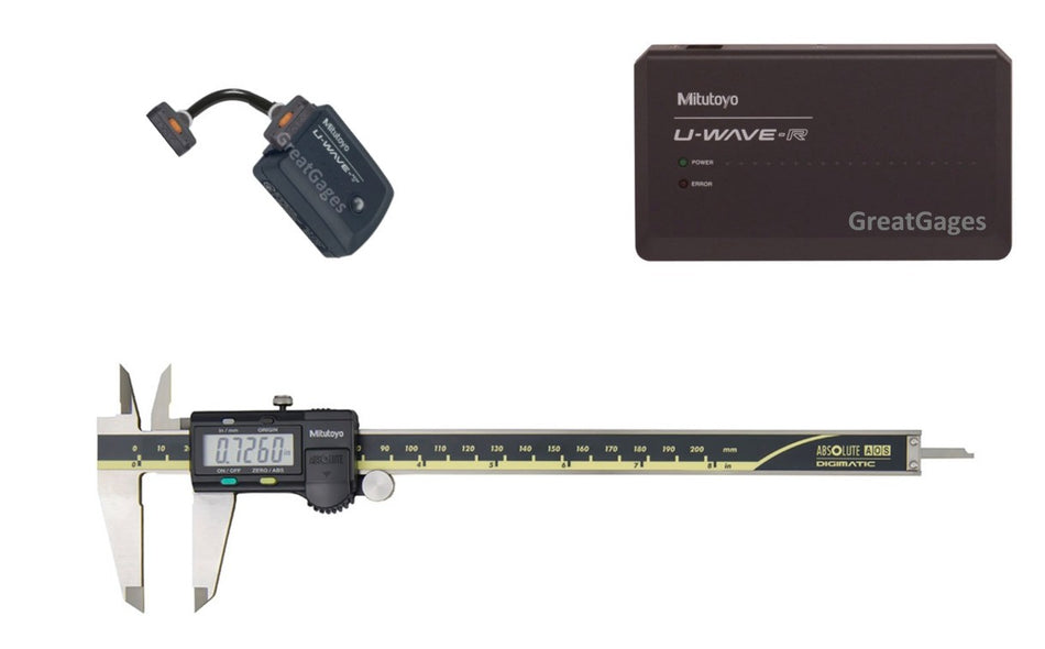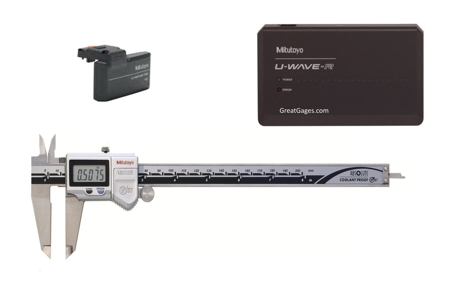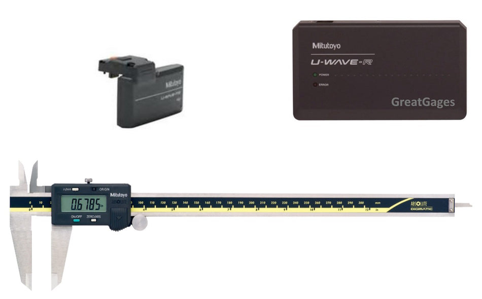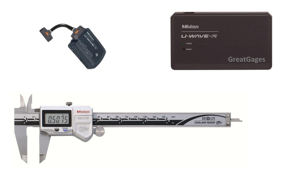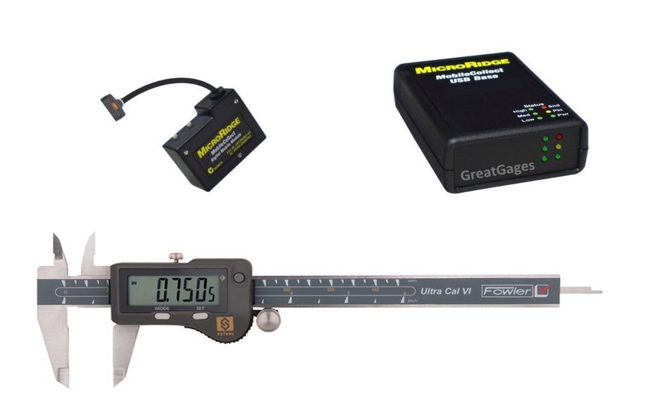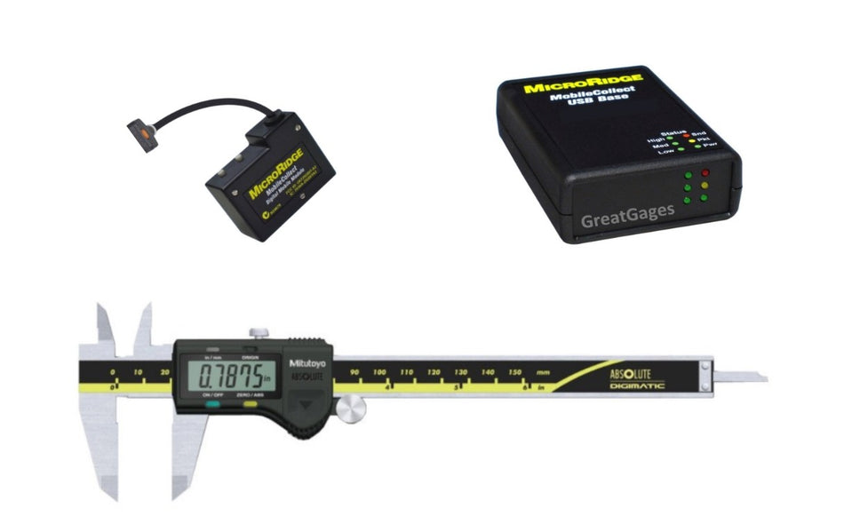 The Digital Caliper to PC Wireless Packages that we offer include a variety of different Digital Calipers combined up with either the Mitutoyo U-Wave Wireless System or the MicroRidge MobileCollect Wireless System. Each of these packages gives you the ability to record and store measurement data directly in a computer, eliminating the need for paper records. Additionally, the wireless transmission of data enables real-time monitoring of measurements, enabling faster decision-making and problem-solving.