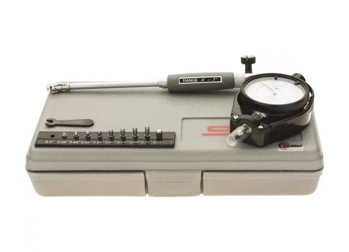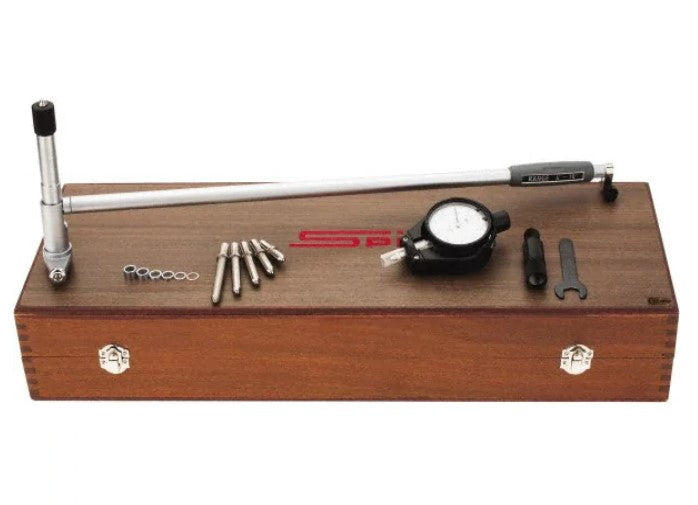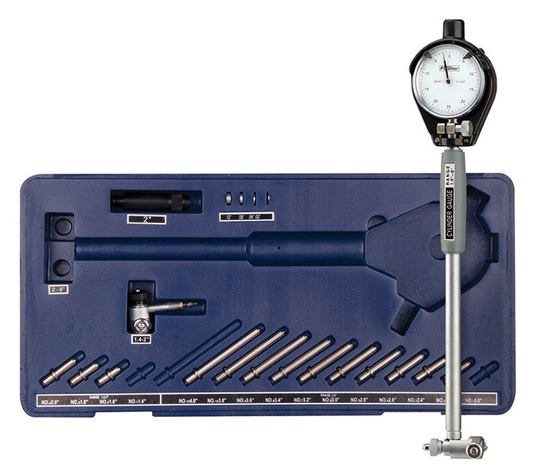 Dial Bore Gages are precision instruments used to measure the diameter of holes in various materials. They are commonly used in the automotive, aerospace, and machining industries to ensure that parts and components meet specific tolerances. These gages consist of a dial indicator mounted on a bar that is inserted into the hole being measured. The indicator has a contact point that rests against the wall of the hole, and as the bar is moved, the indicator needle moves to show the diameter of the hole.