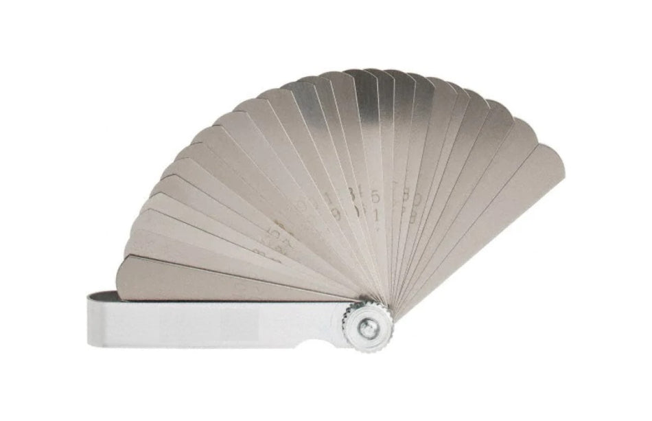 A Feeler Gage is a precision measuring tool used to measure the gap or clearance between two surfaces. Feeler gauges are commonly used in the automotive, aerospace, and manufacturing industries to set clearances between moving parts, such as valves, bearings, and gears.