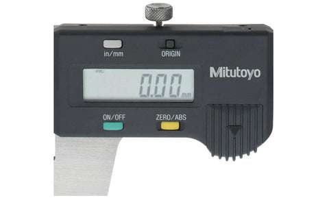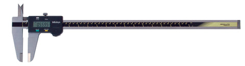 Mitutoyo 0-18" Digital Caliper with SPC Output Mitutoyo's most popular Digital Caliper! Technical Data... Measuring Range: 0-18" / 450mm Resolution: 0.0005" / 0.01mm Repeatability: 0.01mm / .0005 Features include... Large and clear LCD readout. The ZERO/ABS key allows the display to be Zero-Set at any slider position along the scale for incremental comparison measurements. With thumb roller. Supplied in fitted plastic case. Display: LCD Length standard: ABSOLUTE Battery: SR44 (1 pc.) 938882 Battery life: Approx. 3.5 years under normal use Functions include... Origin-set Zero-setting inch/mm conversion