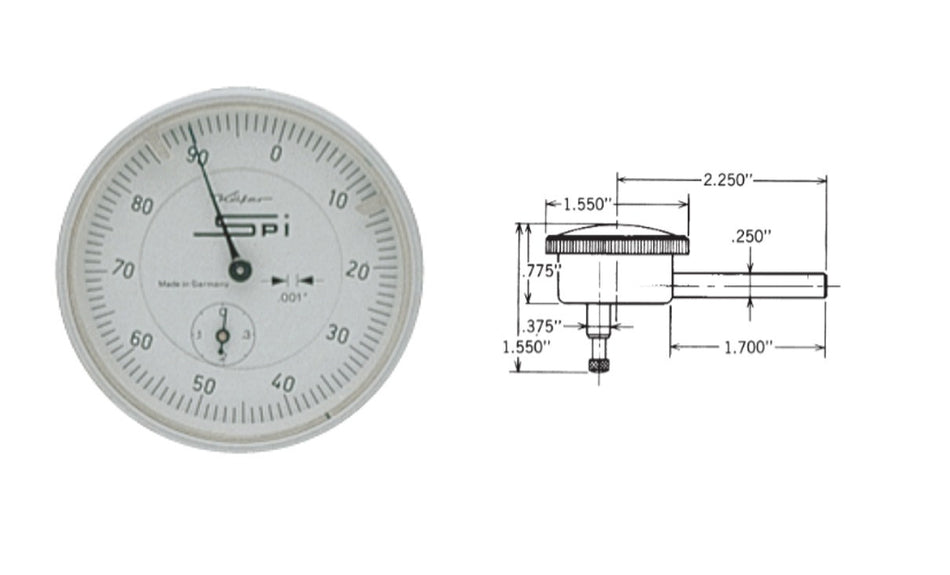 21-535-0 SPI Dial Indicator Set .06" Range, .0005" Grads, 1.5" Dial Dia