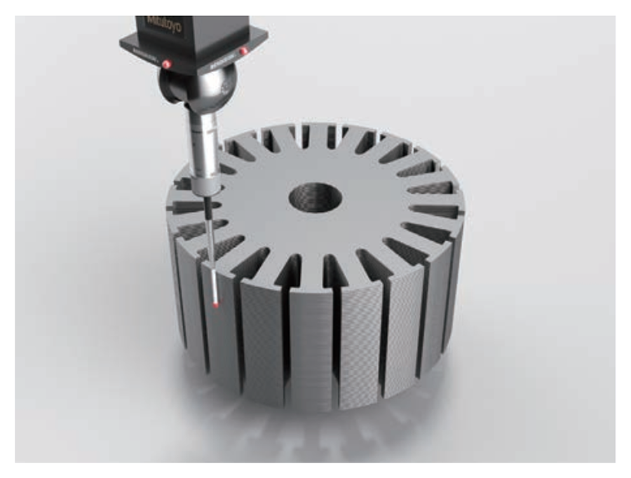 The V Series can measure the straightness, cross-sectional form, etc. of laminated motor cores. It can also conduct measurements of