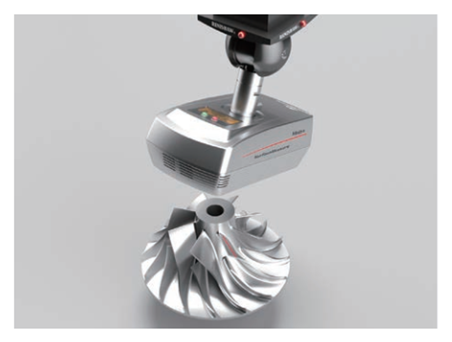 Impellers can be measured using a highly robust non-contact laser probe that reduces multiple reflections. Just as accurate as contact probes, this probe offers high geometric reproducibility.