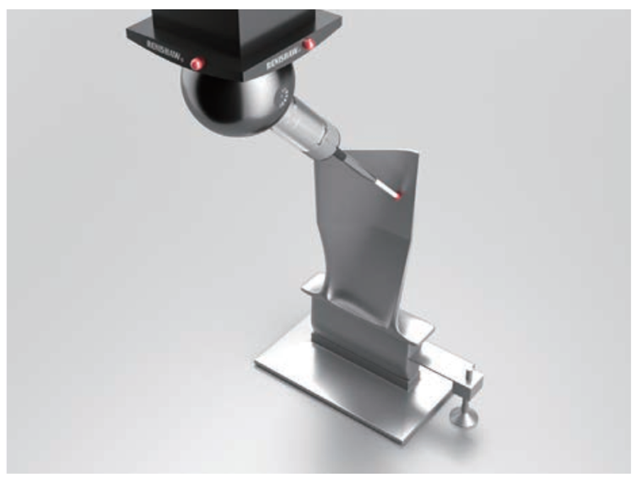 The cross-section of an aircraft engine turbine blade can be measured using a compact, high-accuracy scanning probe. Even workpieces susceptible to large