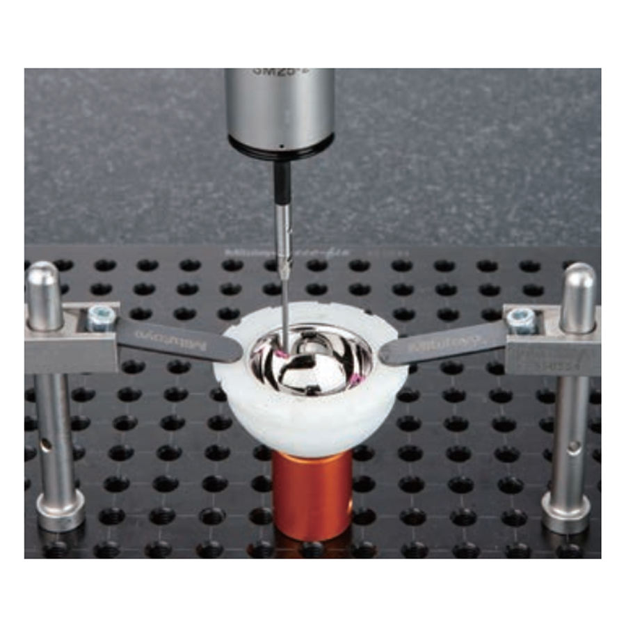Freeform surface measurement of prosthetic joints can be conducted using a compact, high-accuracy scanning probe. Three dimensional error analysis may be performed based on the obtained measurement points.