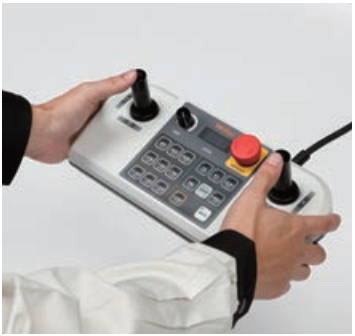 The joystick box allows users to easily operate their CRYSTA-Apex V Series CMM. It comes with control buttons marked with user-friendly icons and an override knob for changing speed.