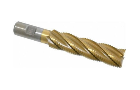 Titanium Nitride Coated Roughing End Mill Best for heavy cuts, deep slotting & pocketing applications. TiN coating provides an ability to increase machine speeds by 10 to 20% vs uncoated tools. Excellent in all steels, and nonferrous materials. Great for General Purpose Use Features include... 1" Mill Diameter 4" Length of Cut 3/4" Shank Diameter 6.25" Overall Length 5 Flutes