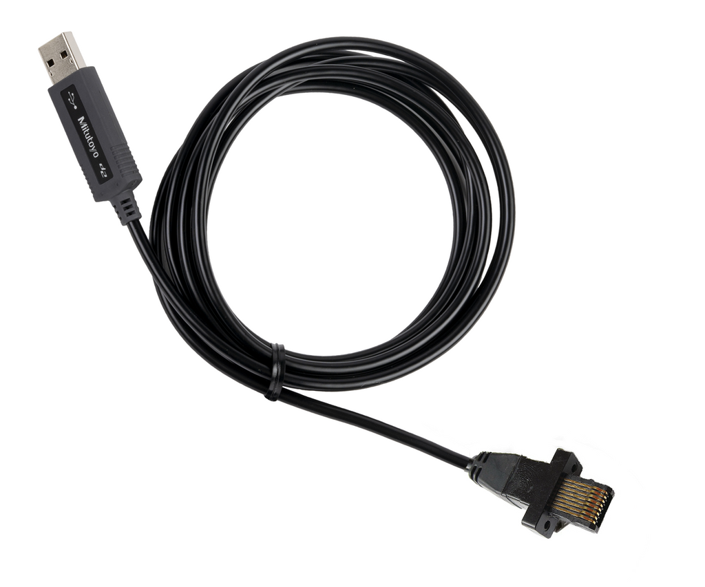 Mitutoyo USB Input Tool Direct Cable Series The Mitutoyo USB Input Tool Direct Cable allows for convenient connection of Mitutoyo digital calipers, micrometers, and other USB-compatible measuring tools directly to a PC. With no data logger required, these cables enable fast, simple data transfer for real-time measurement reading, data collection, and SPC analysis. Offered in 2m length, Mitutoyo's USB input tool cables feature a USB plug on one end and a Mitutoyo Digimatic instrument connection on the other.Durable cable construction stands up to demanding measuring applications while the USB connectivity provides a reliable, standardized interface between measuring instruments and computers. Compatible with popular statistical software, the Mitutoyo USB Input Tool Direct Cables represent an efficient solution for integrating digital measuring tools into statistical process control workflows. ?ÿ Mitutoyo?ÿ06AFM380G Type G: Connects to Mitutoyo Gages with Straight Connector This cable connects your Mitutoyo Gage directly to a PC's USB port and allows you to start sending data to any Window's based software right away. Overall Cable Length is 2m (79") No software wedge to purchase. Once the cable is plugged in to your PC's USB port, Microsoft Windows will recognize this as a Human Interface Device (HID - Keyboard), so there is no extra software program to purchase, install, or have running. The incoming data from your Mitutoyo Digital Gage is treated like a keyboard entry, so wherever you can type in data is where your gage's incoming data will be placed. This allows you to send data directly into ANY Windows-based software programs like MS Excel or even SPC Data Collection software. Works with the following Mitutoyo Gages... Mitutoyo Specialty Digital Indicators Mitutoyo ID-N Slim Type .0005" Res Digital Indicator # 543-571 Mitutoyo ID-N Slim Type .00005" Res Digital Indicator # 543-576 Mitutoyo ID-B Back Plunger .0005" Res Digital Indicator # 543-581 Mitutoyo ID-B Back Plunger .00005" Res Digital Indicator # 543-586