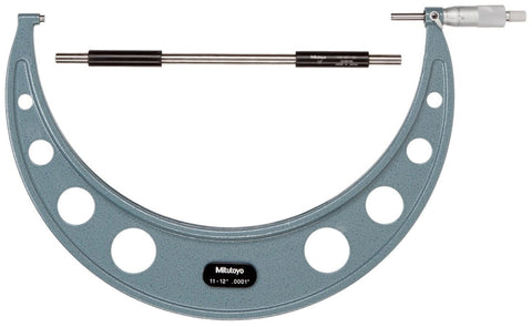 Mitutoyo Outside Micrometer Features include... 11-12" Measuring Range 0.0001" Graduations + .00025" Accuracy With Ratchet Stop With Standard Hammertone-green, baked-enamel finished frame