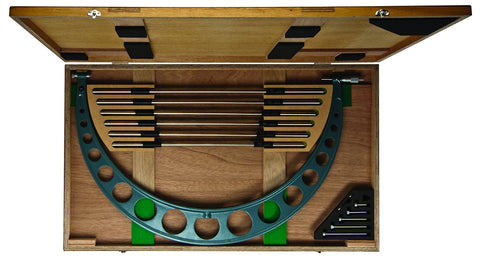 Mitutoyo Outside Micrometer with Interchangeable Anvils Features Include... 36-42" Measuring Range 0.001" Graduations Ratchet stop for constant force Supplied with zero-setting standard bars 6 Anvils 6 Standards Furnished in fitted wooden case