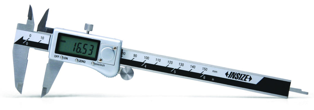 INSIZE Digital Zinc Alloy Caliper with Case Features include... 0-12" / 0-300mm Measuring Range 0.0005" / 0.01mm Resolution Accuracy exceeding DIN862 Buttons: mm/in, on/off, zero Battery CR032, with one spare battery Automatic power off Stainless steel construction Packed in plastic box Includes Inspection Certificate traceable to NIST