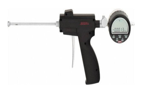 Electronic Pistol Grip Bore Gage Set for I.D. Measurement A pistol grip electronic bore gage allows for single handed operation with right or left hand viewing. The self-centering, 3-point head allows for highly accurate internal measurements. Specifications Include... 0.275" - 0.500" Measuring Range 0.0005" / 0.001mm Resolution Face Rotates 360° + 0.00016" Accuracy 2" Length of Measuring Head Package Includes... 3 Measuring Heads 1 Pistol Grip Body 1 Extension - 4" in length 3 Certified Setting Rings Features Include... Self-centering 3-Point head for higher accuracy Carbide tipped contact points Furnished with fitted aluminum case