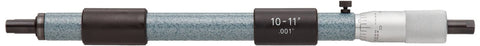 Mitutoyo Tubular Inside Micrometer Specifications include... 10-11" Measuring Range 0.001" Grads Accuracy: +.0003" Features include... Clear, crisp graduations on the satin chrome finished micrometer head. Carbide-tipped measuring faces Zero point can be readjusted by rotating the micrometer head sleeve. Key wrench is supplied. Includes fitted case.