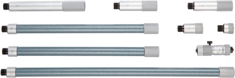 Mitutoyo Tubular Inside Micrometer Set This set allows you to measure a wide range of ID measurements by combining extension rods (pipes) and anvils with the micrometer head. Carbide-tipped measuring faces are available. Specifications include... 2" - 40" Measuring Range 0.001" Grads Accuracy: +{.00012+.00005n+(.00004xR/2)} R=Maximum Measuring length (inch) n=Number of Rods Fraction rounded up Set includes... Micrometer Head Extension Rods .5", 1", 2" (2 pcs), 4", 8" (2 pcs), 12"