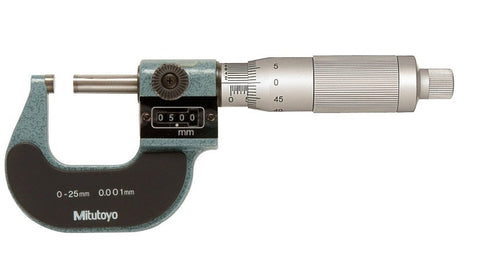 Mitutoyo Digit Counter Outside Micrometer Mechanical digit counter with 0.01mm reading for quick and error-free reading Features include... 0-25mm Measuring Range Graduation: 0.01mm + 2um Accuracy Measuring faces: Carbide tipped Ratchet Stop