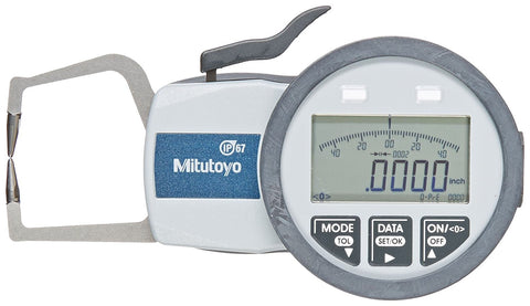 Mitutoyo Thickness Caliper-Type Gage Mitutoyo's versatile OD measuring gage for hole diameters, groove thickness, tube thickness, and hard to reach dimensions. Features include... 0-.39" / 10mm Measuring Range 0.0002" / 0.005mm Resolution 0.0008" / 0.05mm Accuracy 1.37" / 35mm Max Measuring Depth - Reach 0.75" Upper Contact Point Length 0.73" Lower Contact Point Length 0.059" / 1.5mm Ball Diameter Upper & Lower Contact Points