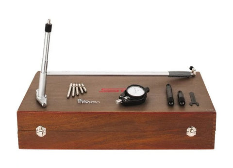 SPI Dial Bore Gage Set These Dial Bore Gage Sets allow for close tolerance inspection of bores for size, ovality, roundness, and taper. Specifications include... 10.00" - 16.00" Measuring Range 0.0001" Graduations 16" Probe Depth 6 Anvils 6 Spacers Features include... AGD group 2 dial indicator is fully protected by rugged cover to minimize potential shock in the machine shop environment. Various anvil sizes are provided in each set to achieve desired measurement range. Spacers also included for fine adjustment. 2 point measurement with precision wheel guide for self-centering. Precise range setting with plain ring gage or micrometer. Indicator accuracy meets or exceeds federal standards. Furnished in fitted case Indicator includes Certificate of Calibration