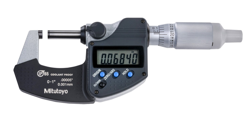 Mitutoyo Digimatic Coolant Proof Micrometer without SPC output. Features Include... 0-1" / 0-25.4mm Measuring Range 0.00005" / 0.001mm Resolution Accuracy + 0.00005" Carbide Tipped Faces Ratchet Thimble Functions Include... Origin Set Zero Set Auto Off Data Hold in/mm conversion PLEASE SELECT CALIBRATION OPTION FROM PULL DOWN MENU. Standard Calibration Usually takes about 3-4 Weeks to ship from Mitutoyo. 5-Day Calibration Ships out within 1 Week after receipt of order. 1-Day Calibration Ships out in 1 Day after receipt of order. INCLUDES CERTIFICATE OF CALIBRATION TRACEABLE TO NIST. Mitutoyo now is offering their most popular gages with an ISO/IEC 17025 Accredited Certificate of Calibration that is traceable to NIST. These calibrations are performed at Mitutoyo America's A2LA Accredited Calibration Laboratory in Aurora, Illinois after receipt of order. The Open Date Put Into Service is to be filled out by the end user when the gage is first used.