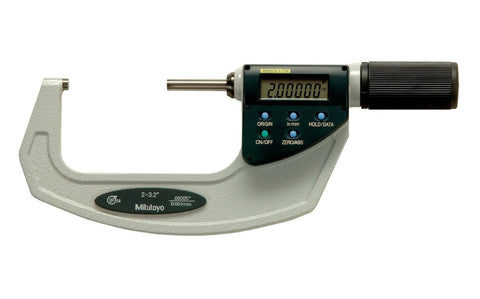 Mitutoyo Quickmike Micrometer The Quickmike provides a speedy spindle feed of 10mm / .4" per thimble rotation as compared to the conventional micrometer with 0.5mm / .025" per rotation. Its wide 30mm / 1.2" measuring range allows various workpieces with different shapes to be measured quickly. Specifications include... 2-3.2" / 50.8-81.28mm Measuring Range 0.00005" / 0.001mm Resolution + 0.00015" Accuracy Features include... Non-rotating spindle and the new ratchet friction thimble Speedy spindle feed of 0.4" / 10mm per revolution With absolute linear scale IP54 dust/water protection With SPC data output Supplied in fitted plastic case.