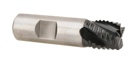 TiAIN Coated Roughing End Mill Cobalt is harder than high speed steel and provides better wear resistance. It is commonly used on high tensile alloys. Titanium Aluminum Nitride (TiAlN) has a higher hardness and oxidation temperature versus TiN and TiCN. As a result, it is particularly advantageous for higher speed operations in a variety of steel machining applications. Best for heavy cuts, cerntercutting for plunge cuts, deep slotting & pocketing applications. Excellent in all steels, and nonferrous materials. Features include... 3/4" Mill Diameter 3/4" Length of Cut 3/4" Shank Diameter 2-7/8" Overall Length 4 Flutes 30° Helix