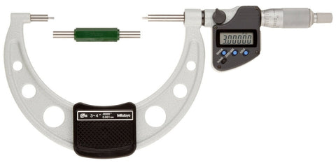 Mitutoyo Electronic Spline Micrometer with SPC Output This micrometer with its carbide measuring faces is designed to help you measure difficult applications like shafts, slots, and keyways. Spline Diameters: 0.079" / 2mm Features include... 3-4" / 75-100mm Measuring Range 0.00005" / 0.001mm Resolution 0.00016" Accuracy 0.250" Spindle Diameter ABS / Inch / Metric Measuring Ratchet Thimble Includes Standard Furnished in fitted case