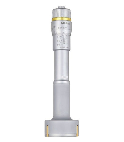 Mitutoyo Holtest Internal Micrometer These Holtests are versatile, self-centering three-point internal micrometers for the accurate and efficient direct-measurement of internal diameters. Three anvils, evenly spaced at 120° apart, contact the internal wall surfaces and find true alignment with the axis of the bore for accurate ID measurement. Specifications Include... 3.00" - 3.50" Measuring Range 0.0002" Graduations Features Include... TiN-coated measuring contact points provide excellent durability and impact resistance and allow the instrument to measure right to the bottom of a blind hole. Highly durable because of carbide-tipped contact points (anvils). Measurement can be taken closer to the bottom of the blind bore. Can measure deep holes using an Extension rod (optional). With Ratchet Stop for constant force. Setting Rings for zero point adjustment are optional. Supplied in fitted plastic case.