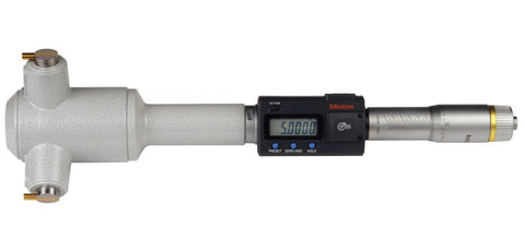 Mitutoyo Digimatic Holtest - 3 Point Internal Micrometer Specifications include... 6.00" - 7.00" / 152.40 - 177.80mm Measuring Range 0.00005" / 0.001mm Resolution + .0002" Accuracy Features include... TiN-coated contact points provide excellent durability, impact resistance, and allow the instrument to measure right to the bottom of a blind hole. Large LCD readout. With Ratchet Stop for constant force. Measurement can be taken closer to the bottom of the blind bore. Can measure deep holes by attaching an Extension rod (optional). Setting rings for origin point setting are optional. Supplied in fitted plastic case. Functions include... Zero-setting, Data hold, Data output, Preset, inch/mm conversion (inch/mm models) Alarm: Low voltage, Counting value composition error
