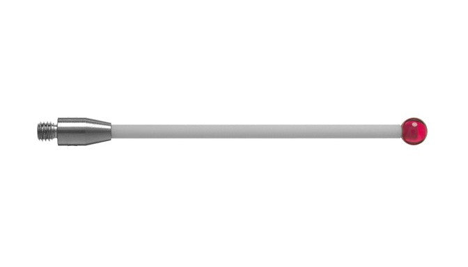 CMM Stylus Features include... 4mm Ruby Ball 50mm Length M3 Thread Ceramic Stem Straight styli are designed to inspect simple features where direct, unobstructed contact with a measured surface is possible. A ceramic stem is lightweight yet very stiff and offers built-in crash protection. Ruby is regarded as the industry standard for stylus tips. It is one of the hardest materials available and suitable for most applications. Due to adhesive pickup, ruby tips are not recommended for scanning aluminum parts.