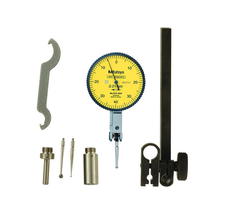 Mitutoyo Quick-Set Indicator set The most direct gear train design ever applied to Test Indicators means higher levels of sensitivity, reliability, repeatability and accuracy throughout tool life. Features Include... 0-0.08mm Range 0.01mm Graduation 0-40-0 Dial Reading Kit includes... Test Indicator Swivel Clamp Holding Bar 3 Contact Points 2 Stems