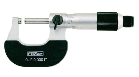 Fowler Economy Micrometer Features Include... 0-1" Measuring Range 0.0001" Graduations + 0.00016" Accuracy Carbide measuring faces Ratchet thimble and locking nut Microfine graduations Sizes over 1" include standard Meets or exceeds Federal specifications Includes case.