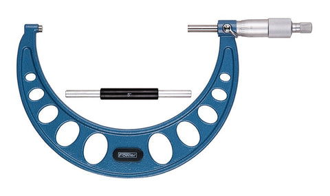 Fowler Outside Micrometer Fowler micrometers are of the finest quality available, at prices that defy competition. Special care in design and workmanship create a long lasting precision tool. Specifications include... 5-6" Measuring Range 0.0001" Graduations + .00025" Accuracy Features include... Ratchet Thimble Standard included Hammertone blue baked enamel finish. Microfine graduations on satin chrome finish and carbide tipped measuring faces. Diameter of measuring faces: .256" Flatness: .00003" Quick, easy zero adjustment on sleeve. Positive lever locking clamp Spindle thread hardened, ground and lapped for ultimate accuracy. Anvil & spindle hardened and precision ground with microlap finish on tips. Includes a wrench and case.