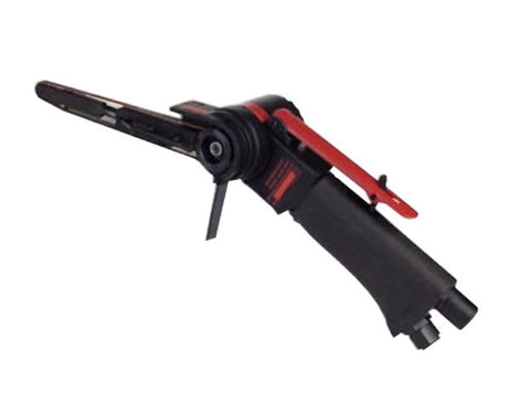 Air Belt Sander This Air Belt Sander is ideal for deburring and polishing in industrial settings. This belt sander works well on all materials, including metals, plywood, plastics and stone. The unit includes a rear exhaust, comfort grip, safety lever and silencer, keeping the noise level to approximately 84 dB(A). Features include... Rotates 360° for efficient use. 120 grit belts 1/4" NPT air inlet 4.2 CFM 1-5/32" Belt Width 21.25" Belt Length 14,000 RPM