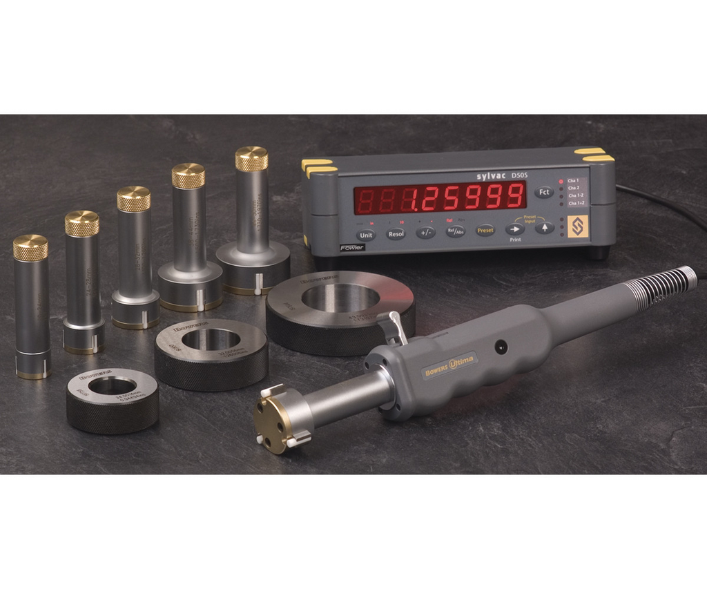 Introducing the Ultima Bore Gaging System from Fowler Bowers, a remarkable leap forward in precision measurement technology. Building upon the legacy of the renowned Super-Bore line of bore gages and accessories, the Ultima promises exceptional quality and accuracy. One of its standout features is the constant spring pressure, guaranteeing unparalleled repeatability in measurements. The heads effortlessly self-center within the bore, providing a positive feel for users. Features: • Measuring range: 0.787" - 1.97"/20 - 50mm• Resolution: 0.00001"/0.0001mm• Constant spring pressure ensures top repeatability• Positive feel when heads self-center in the bore• "FASTFIT" measuring heads for rapid replacement• UKAS certificates standard for all measuring heads• UKAS certificates standard for all setting rings• Ceramic anvils on heads above 0.472"/12mm• Blind-bore measurement standard above 0.472"/12mm• Possible to connect several probe holders to one single readout to measure different bore sizes at one measuring station• The complete range of Bowers special heads are available for the Ultima (grooves, threads, splines, deep-bores etc.)• Depth stops available for all heads• Extensions available for deep bore measurement Set includes: Handle, rings and heads - does not include readout. Special features: Greater accuracy Utilizes Bowers' "FASTFIT" measuring heads Setting rings manufactured to DIN Standard 2250 part 2 Extended head ranges (above 14mm) for greater flexibility and cost-effective measurement All 2-6mm sets supplied with depth-stop as standard Digital Display: D62S displays are light weight, compact units designed exclusively for P12D probes using an M8 industrial connector. Each display features a 4.3" touchscreen color display and a selectable resolution up to 0.00001"/0.01µm 2 M8 connectors for P12D probes Foot pedal connection Basic mathematical functions Tolerances, go-nogo, Int., Ext. Advanced Digital Display Specifications: D62S Advanced units include all the features of the D62S Digital Display (54-618-106-2) Bluetooth wireless technology Built in battery autonomy of 8 hours Global tolerance LED indicators Formulas, MIn, Max, Delta Time and date displays 2 foot pedal connections