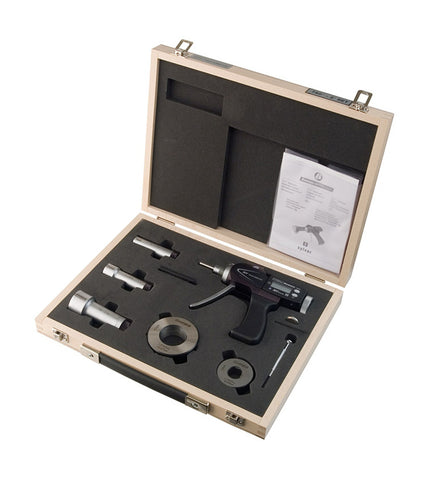 Fowler Pistol Grip Bore Gage Set with Bluetooth Output Specifications include... 6.00" - 8.00" / 150-200mm Bore Gage Set 0.00005" / 0.001mm Resolution 2 Heads, 1 Handle, 1 Rings Fowler/Bowers XT Holematic Pistol Grip range of bore gages offer extended travel with fixed anvils. The pistol grip handle incorporates a constant measuring pressure to eliminate operator "feel". Special Features: Simple, two button operation Large easy-to-read swivel display Self-centering heads RS-232C output Two preset memories Non-removeable anvils All gages and heads are serialized Tungsten carbide measuring faces on all 3-point heads from .5" (12.5mm) and up. Setting rings included in all sets Includes UKAS certificates for all pistol grips and rings. Send data directly to a Bluetooth cell phone or Tablet with the FREE Sylvac BT Smart app. To be able to send data to a PC, you will need to also buy the Fowler USB Bluetooth Receiver for that PC. You can have up to 8 different gages sending data to the 1 PC through this Bluetooth Receiver.