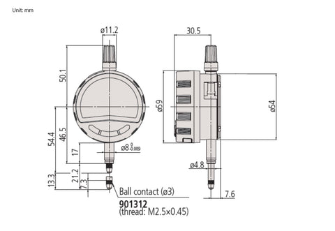 Mitutoyo's NEW ID-C Series is their standard digital indicator line. A large LCD display is incorporated into the gage making for improved visibility, and rotates 330°, allowing for use at a position where the measurement value can always be easily read. Included are three large, easy to press buttons that you can freely set to ANY frequently used functions. Also included in this new model is an analog bar that makes it convenient for observing subtle movements such as the approach to tolerance. Specifications... 0-.5" / 12.7mm Measuring Range .0005"/0.01mm Resolution + 0.0010" / 0.02mm Accuracy 0.9N or less Measuring Force Flat Back Face Rotates 330° Stem Diameter: 8mm Tip Thread: M2.5 SPC Output Battery Operated Functions include... MIN, MAX, TIR Preset / Zero-Set Direction Switching