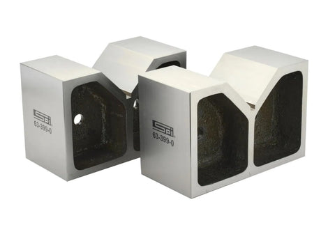 Precision ground matched pairs made of cast iron grade 20 Accuracy... Flatness: 0.0005" Parallelism: 0.0008" Perpendicularity: 0.0008" Size... Width: 11 13/16" V-Opening: 5 1/16" Height: 7 7/8" Length: 5 15/16"