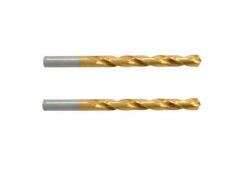TiN Coated Drill Bit - 2 Pcs The HSS Tool Material provides good wear resistance in mild steels, soft metals (aluminum, copper,brass, bronze) and non-ferrous materials.The TiN Oxide Coating increases lubricity and heat resistance. Allows increase in machine speeds of 25 - 35%. Features include... 7/16" Mill Diameter 0.4375" Diameter 4 1/16" Flute Length 5 1/2" Overall Length Solid Carbide TiN Coated 118° Point Angle 2 Pcs