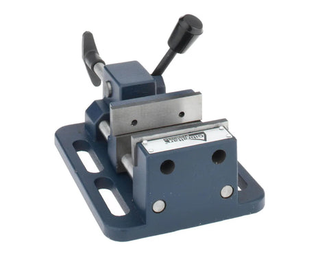 Quick Release Drill Press Vise Allows for quick locking and release of workpiece. Adjustable screw for custom clamping forces. Replaceable jaw is ground flat. Made from FC25 fine grain cast iron. Features include... Jaw Width: 4" Jaw Opening: 4" Jaw Depth: 1 3/8" Height: 3 9/16" Base Length: 11 3/16" Base Width: 5.75" Weight: 24 lbs