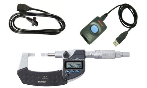 Mitutoyo Blade Micrometer to PC Interface Package This package provides all of the items required to be able to measure your products with a Mitutoyo 0-1" Digital Blade Micrometer, and then send the measured data to a PC through a USB port. The incoming data is converted to a keyboard style entry, so wherever you can type in data is where your incoming data will be placed. Works great with MS Word, Excel..., even SPC software packages. Complete package includes the following... Mitutoyo 0-1" Digital Blade Micrometer w/SPC Output Mitutoyo USB Data Input Tool 2m SPC Interface cable Micrometer Specifications include... 0-1" / 0-25mm Measuring Range 0.00005" / 0.001mm Resolution + .00015" Accuracy
