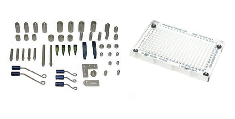Rayco Basic Vision Fixture Kit with Components and 8" x 8" Plate This vision system fixturing kit includes a 200mm x 200mm x 19mm Rayco Acrylic Vision Plate that has M4 threaded holes 10mm on center. This plate is numbered and lettered to help document setups for repeatability and reproducibility. Includes the following... Clear Acrylic Vision Plate Vision Kit A with 1/4-20 thread. Total Component Count: 39 (3) R20-2550-SO: .25” Dia. x .50” Standoff (3) R20-251-SO: .25” Dia. x 1.0” Standoff (3) R20-37525-SO: .375” Dia. x .25” Standoff (3) R20-37550-SO: .375” Dia. x .50” Standoff (3) R20-3751-SO: .375” Dia. x 1.0” Standoff (3) R20-5050-SO: .50” Dia. x .50” Standoff (2) R20-2550-PSO: .25” Dia. x .50” Pin Standoff (2) R20-37550-PSO: .375” Dia. x .50” Pin Standoff (2) R20-MTS-1: Mini Tension Spring – 1” Post (3) R20-WTS-125-1: Wire Tension Spring Clamp – 1” Post (3) R20-WTS-2-2: Wire Tension Spring Clamp – 2” Post (4) R20-SRP: Steel Resting Pin (1) R20-MCV: MINI Corner Viewer (1) R20-50-JS: .50” Dia. Small Jackstand (1) R20-MSLD: Mini Slide Base (1) R20-LB: Locating Block with Base (1) XT-BOX: Organizer Box