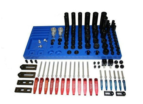 Rayco CMM Fixture Component Kit Maximize the use of a Rayco CMM Fixture Plate with this 109 pc Component Kit! 1/4-20 Threads Included in this kit... (3) R20-37550-SO: .375” Dia. x .50” Standoff (6) R20-5075-SO: .50” Dia. x .75” Standoff (6) R20-501-SO: .50” Dia. x 1” Standoff (6) R20-502-SO: .50” Dia. x 2” Standoff (3) R20-7550-SO: .75” Dia. x .50” Standoff (6) R20-751-SO: .75” Dia. x 1” Standoff (6) R20-7575-SO: .75″ Dia. X .50” Standoff (6) R20-752-SO: .75” Dia. x 2” Standoff (4) R20-754-SO: .75” Dia. x 4” Standoff (6) R20-175-SO: 1” Dia. x .75” Standoff (6) R20-11-SO: 1” Dia. x 1” Standoff (6) R20-12-SO: 1” Dia. x 2” Standoff (4) R20-14-SO: 1” Dia. x 4” Standoff (4) R20-501-PSO: .50” Dia. x 1” Pin Standoff (6) R20-STS-15: Small Tension Spring – 1.5” Post (12) R20-LTS-3: Large Tension Spring – 3” Post (4) R20-NC: Nylon Cone (4) R20-SRP: Steel Resting Pin (2) R20-50-JS: .50” Dia. Small Jackstand (2) R20-1-JS: 1” Dia. Large Jackstand (2) R20-MSLD: Mini Slide Base (2) R20-SLD: Slide Base (2) R20-LB: Locating Block with Base (1) R20-SCT: 1/4-20 Small Component Tray (black)