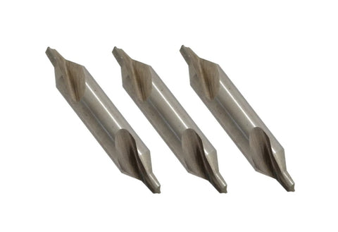 60°¸ Center Drill Set, 3 pcs Features include... Size 7 60°¸ Combined Drill & Countersink 3 1/4" Overall Length 3 pc package HSS Right Hand Body Dia: 5/8" Drill Dia: 1/4" Drill Length: 1/4"
