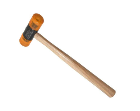 Stanley Dead Blow Hammer Features include... Faces are made of durable plastic that won't mar finely finished surfaces. Handle is securely locked on oval eye body. Hickory Handle 12" Long Handle 1/2 lbs Head Weight 1-13/64 Face Diameter
