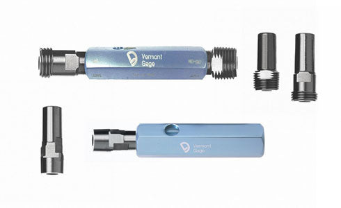 Vermont NPTF (Dryseal) Tapered Pipe Thread Plug Gage Assemblies These Thread Plug Gages allow you to check tapered and straight internal pipe threads. Perfect for inspecting standard pipe and pipe fittings.These Vermont Pipe Thread Plug Gages are made to precise Class X tolerances per ASME B1.20.1 and include a Certificate of Accuracy. Each Thread Plug Gage includes Handle - light blue in color. These Vermont NPTF Assemblies include an L-1 and an L-3 Plug. L-1 Basic Pug Gage Primarily checks the pitch diameter of the thread at the hand-tight length of engagement. L-3 Basic Plug Gage Checks the taper and overall thread profile at the wrench-tight length of engagement. Select Specific Thread Size from Pull Down Menu. Need Calibration? Calibration is an additional service that can be added to most thread gages. If you need calibration please send an email to sales@greatgages.com or you can find more information on how to reach us on our Contact Us page. Certificate of Accuracy All of our manufacturers include a Certificate of Accuracy with their Thread Gages off-the-shelf. These Certificates are statements that the gage has been verified to be accurate from the manufacturer, and that the manufacturer has used NIST-traceable gages to perform this verification. However, this is NOT a Certificate of Calibration. Certificate of Calibration None of our manufacturers include a Certificate of Calibration with their gages off-the-shelf. If the customer needs a Certificate of Calibration, that is a NIST-traceable document with verified readings, this is an additional Calibration Service that needs to be quoted with the gage. The standard lead time for a Calibration Service adds about 1-week to the lead time of the gage.